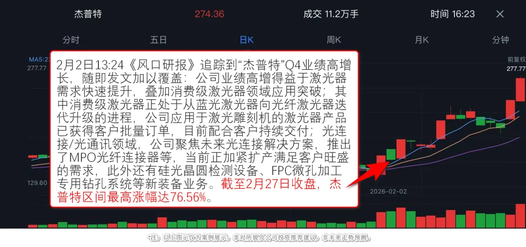 2月2日《风口研报》发文聚焦杰普特,精准捕捉公司业绩高增+CPO突破的双重逻辑,
