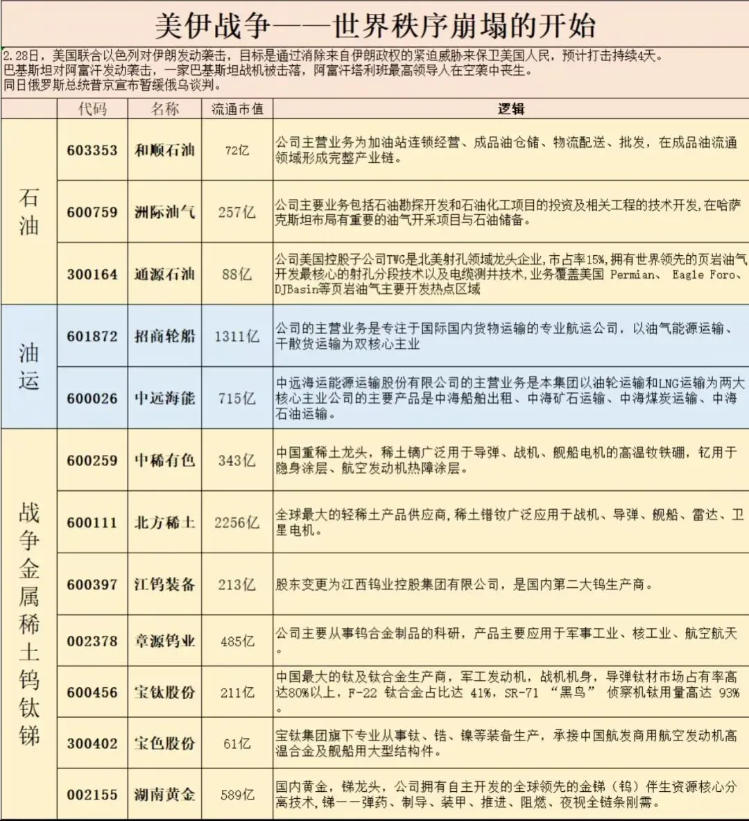3、全球多家公司宣布暂停石油与燃料船只通过霍尔木兹海峡。