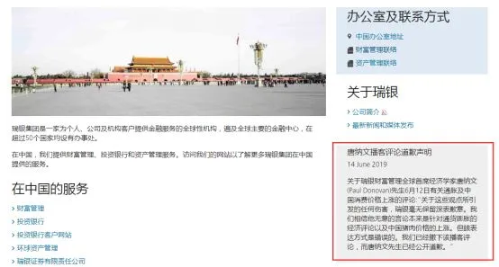 瑞银在该份致歉声明中称,经初步调查,唐纳文言论是无心之过,绝非有意冒犯中国人民。
