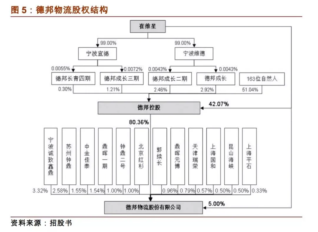 德邦物流控股股东为德邦控股,持有上市公司发行前80.36%的股份;崔维星通过德邦控股间接控制上市公司,为上市公司实际控制人。