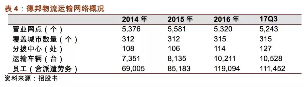 截至2017年9月30日,公司及下属全资子公司在全国32个省、市、自治区的315个城市共拥有营业网点5,243个(不含事业合伙人网点),拥有各型运输车辆10,528台(仅考虑长途车车头而不考虑半挂车的计算口径),在北京、上海、广州、武汉、成都、郑州等各区域中心城市有127处分拨中心,进行24小时的货物运输服务。