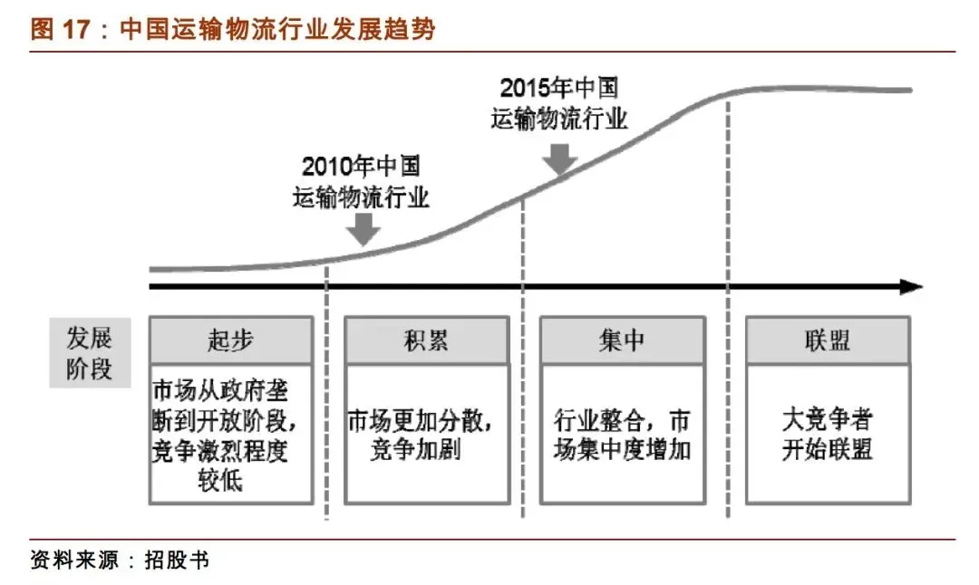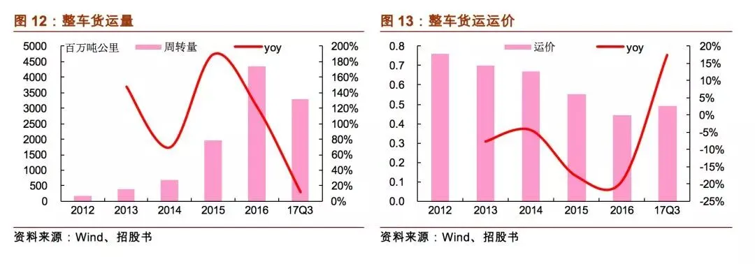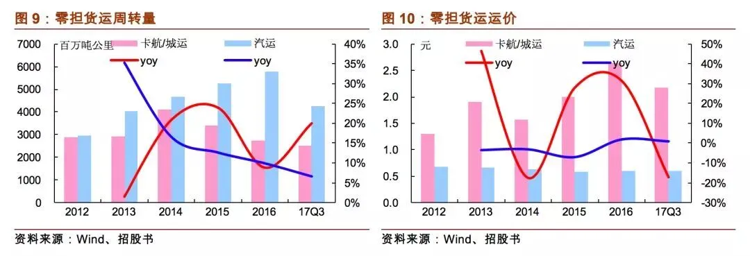 3)快递运输:快递是增速最快的货运细分市场。其客户极为分散,时效性要求高,市场壁垒高于零担和整车运输,集中度遥遥领先整车和零担市场。