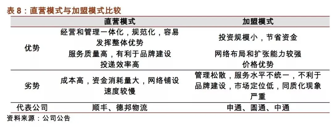 公司多年来坚持以直营网络为主、自有运输车辆与外请车辆相结合的经营策略,虽然在业务开展的早期阶段资本投入规模较大,但由于对开展业务的各个操作环节拥有绝对的控制力,本公司在服务质量方面能够提供更加优质的保障,因而对市场上更加注重服务质量的优质客户具有更大的吸引力。在启动事业合伙人计划后,公司仍然按照直营网络的管理模式对合伙人进行管理,确保公司的核心竞争力不会受到削弱。