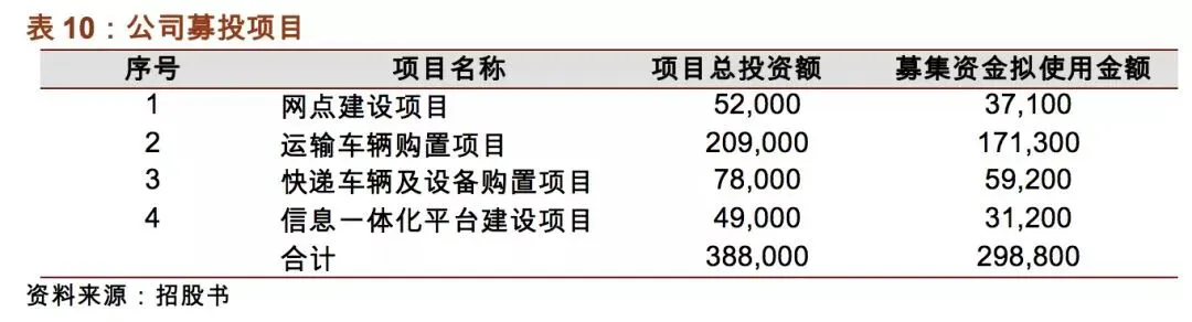 ◯ 募投项目:公司拟以4.84元/股发行1亿股,募集资金分别用于直营网点建设、零担运输车辆购置、快递车辆与设备购置和物流信息一体化平台。