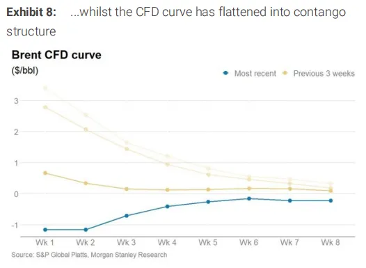 Brent 结构走弱,月差转向 contango,美国库存单周增加约一千六百万桶。换句话说,市场在地缘冲突之前处在偏宽松状态。