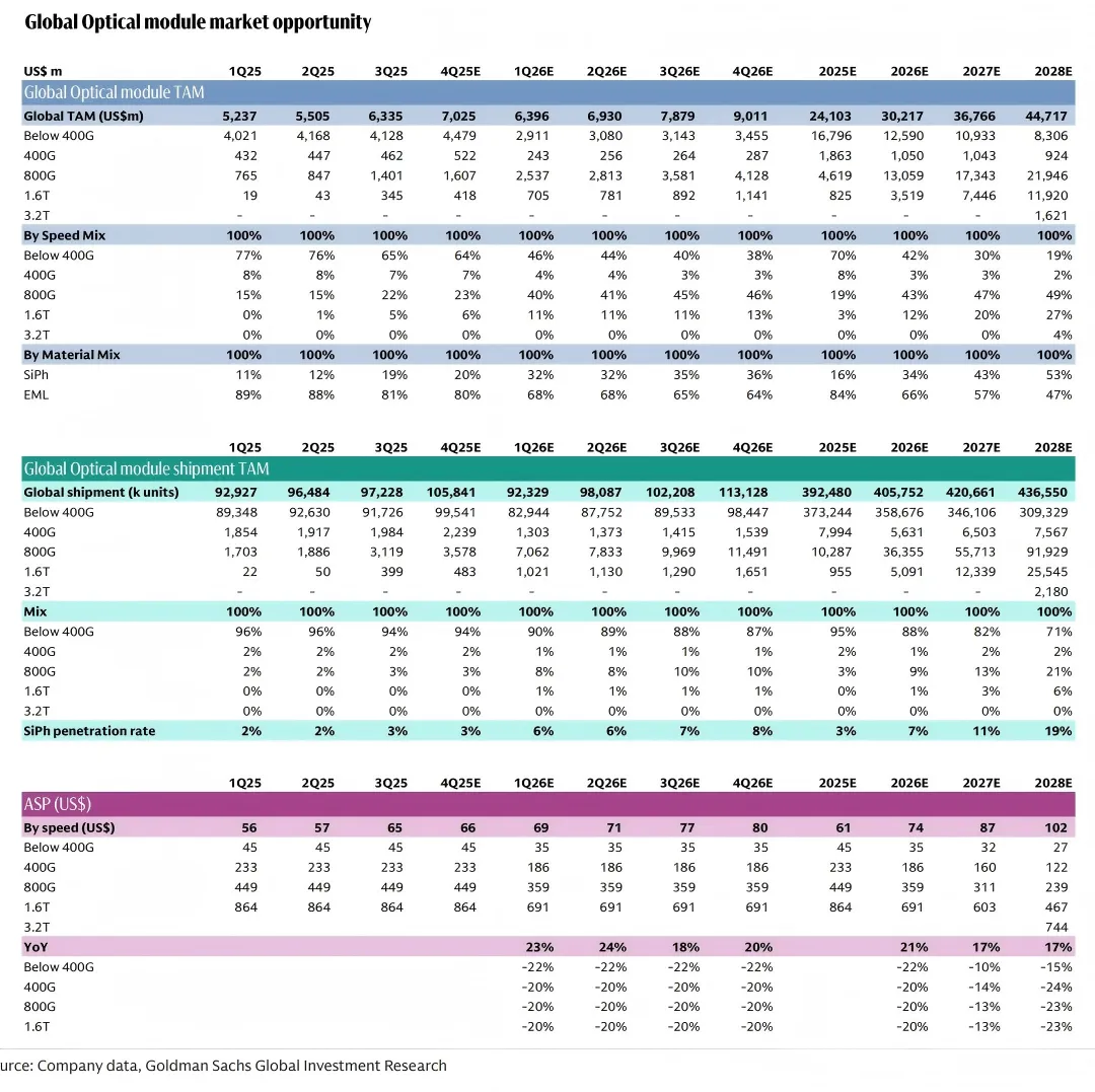 高盛的预测勾勒出清晰的行业增长曲线,关键数据堪称 “量价齐升” 的典范:
