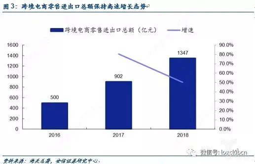 跨境电商蓬勃发展:16-18年跨境零售额复合增速到64%。近年来随着跨境电商的蓬勃发展,国内快递企业纷纷开始海外布局。据海关统计,2018年我国跨境电商零售进出口总额达到1347亿元,同比增长50%,16-18年进出口总额CAGR达到64%。