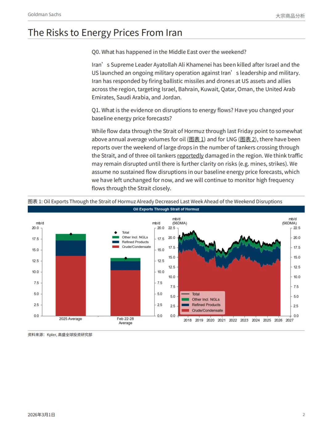 『研报』高盛-大宗商品分析:伊朗时局对能源价格构成的风险 (摘要)