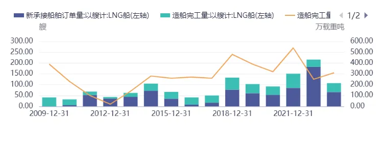 图表LNG运输业务盈利能力与船舶投资规模 |