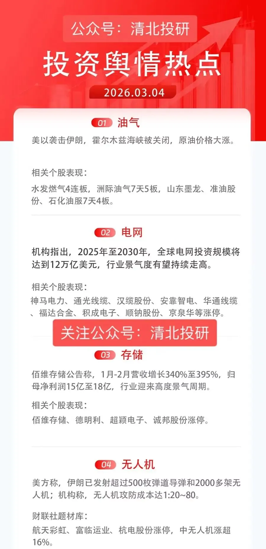 周四关注方向:油气+电网+存储+无人机