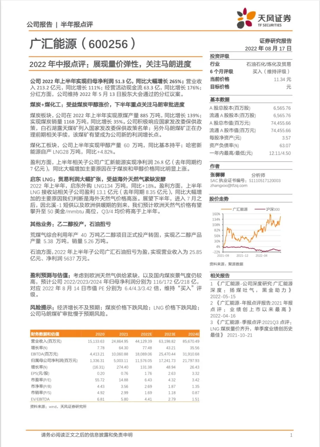 天风研报 | 2022 年中报点评:展现量价弹性,关注马朗进度