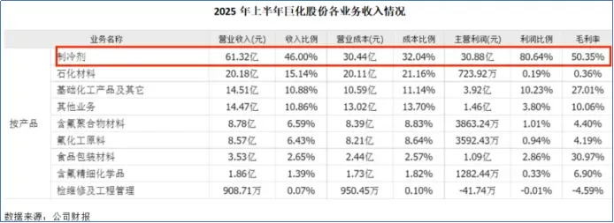 若单独来看,2025年上半年,巨化股份制冷剂业务的毛利率达到50%,与三美股份相当。