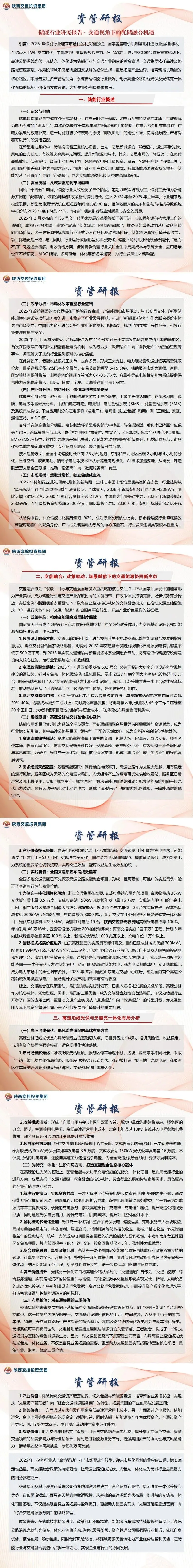资管研报|储能行业研究报告:交通视角下的光储融合机遇