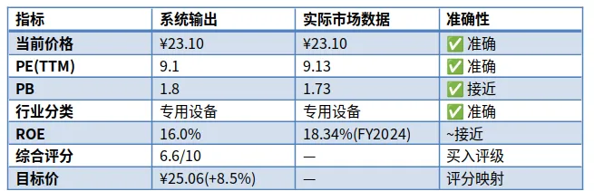 核心数据准确度很高。ROE有一点偏差是因为API返回的财务数据期数差异——不是系统算错了,是数据源还没更新到最新年报。
