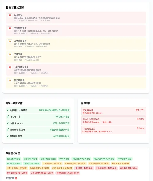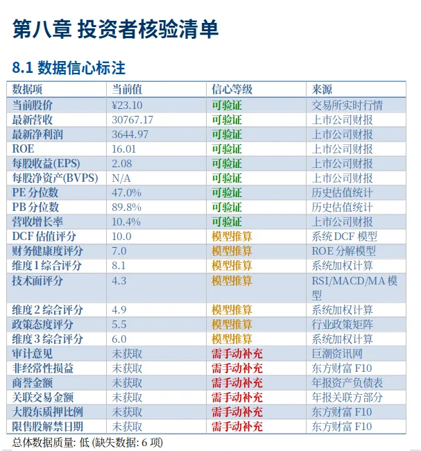 ✅ 自动标注数据信心等级和核验要求