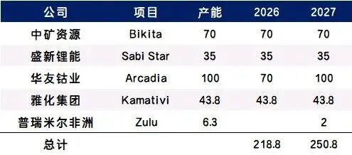 第二,逼矿企在本地加工。更重要的一点是,原先津巴布韦宣布了2027年起禁止出口锂精矿,但是这回提前了。也就是说,未来矿石不能直接运走,必须在当地加工成锂盐。但问题来了,加工厂建设进度太慢。到2026年,锂盐产量只有约2.5万吨LCE,到2027年也不过6万吨LCE,对比矿山25万吨的产量——加工能力明显不够。这就形成一个很尴尬的局面,矿能挖出来,但加工不了,如果2027年真的严格执行禁令,供应中断风险就会出现。