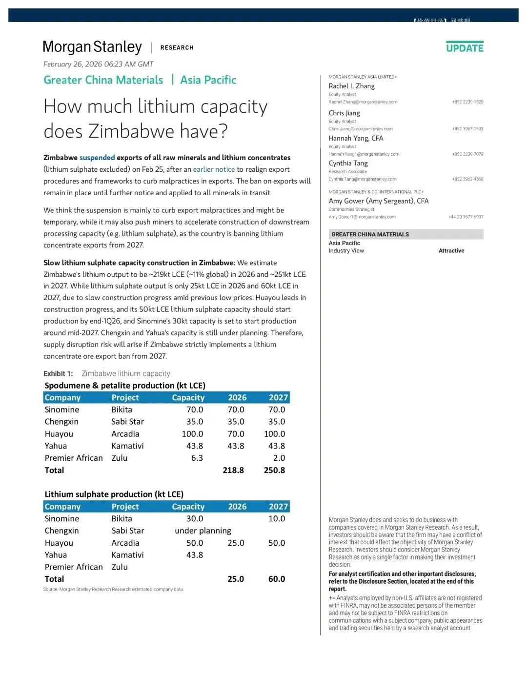原文:Morgan Stanley《How much lithium capacity does Zimbabwe have?》