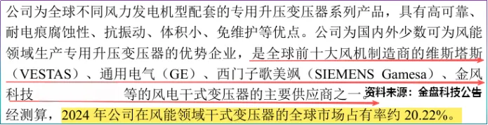 截至2025年上半年,公司干式变压器直接或间接出口至境外风电场项目1.7万多台,是金风科技、维斯塔斯、通用电气等全球前十大风机制造商的主要供应商。