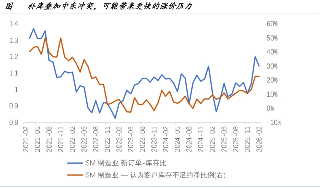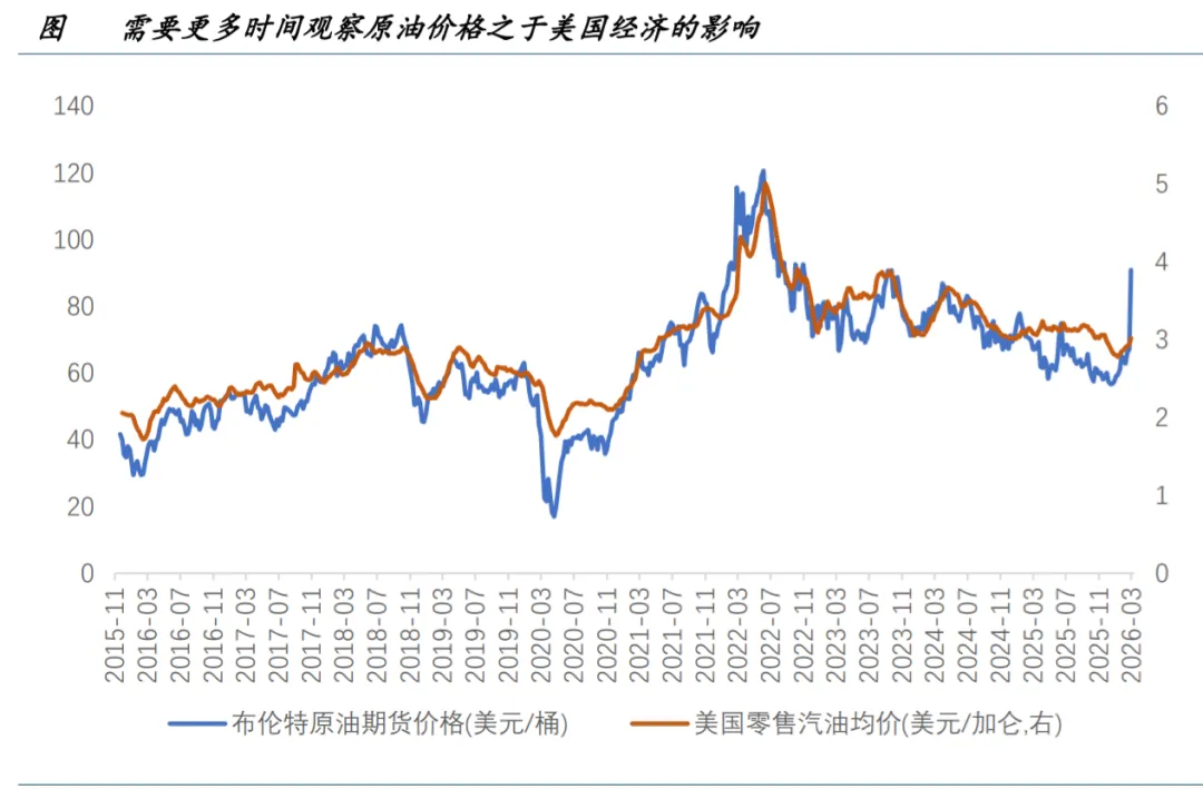最后,需要重视“油价上涨和制造业补库”共振对于美国居民可负担性的压力。 2026 年至今美国与欧洲制造业 PMI 持续小幅反弹,但从实际调查中这更多对应的是低价库存消耗后的被迫补库需求, 而非需求的修复。这些补充的库存将更多反馈出关税所带来的价格上涨,而中东冲突带来的原油价格飙升可能进一步 推动“被迫涨价”的发生,对需求产生更大压力。