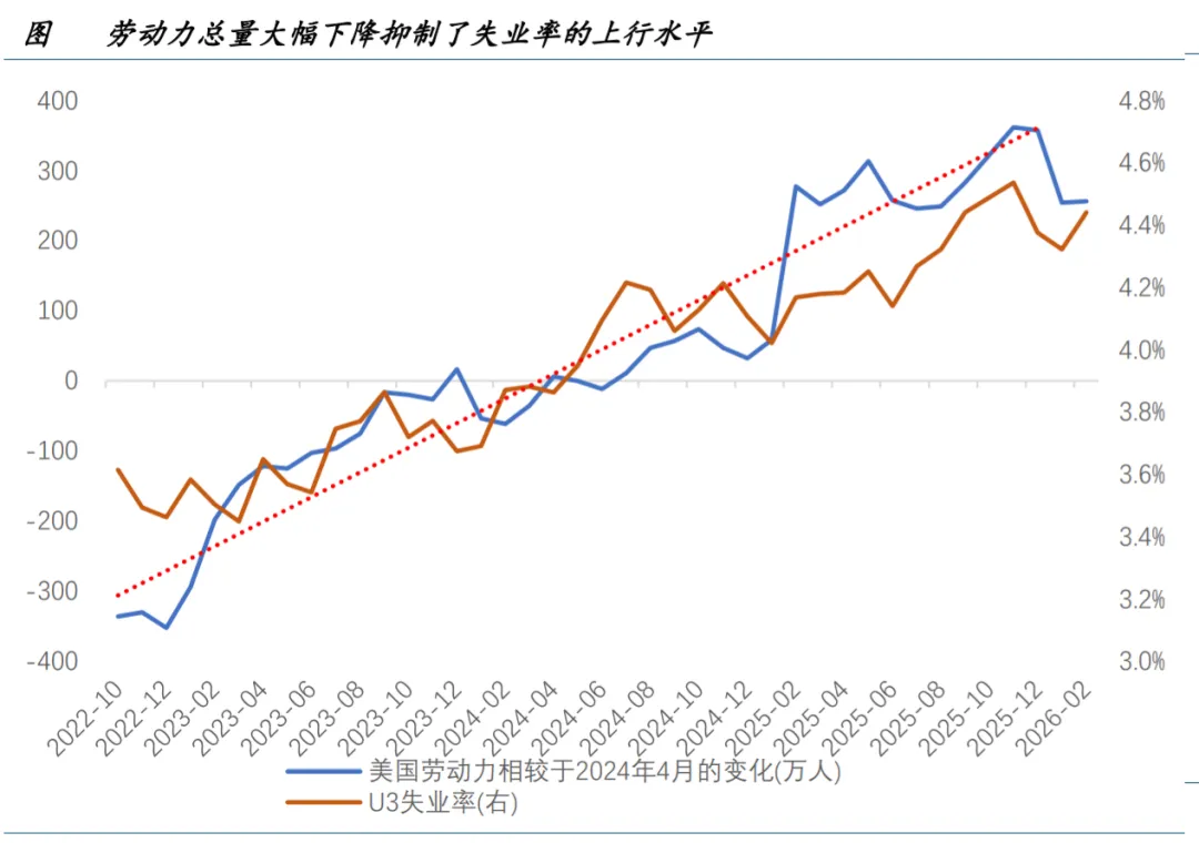 4.44%的失业率,私人部门-8.6 万人的新增就业,以及在人口调整后大幅回落的劳动力(参与率),足以证明美国劳动 力市场远非此前联储官员口中的那样稳健。另一方面,联储期待的“劳动供给走弱压制失业率”终于变得更加显性, 问题是这与联储货币政策无关。