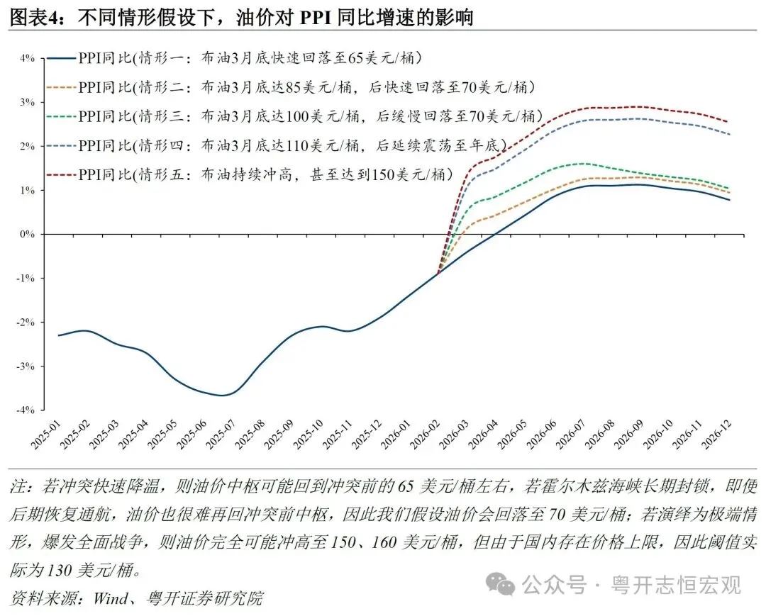 其三,只要霍尔木兹海峡封锁达1个月(其他情形下),则PPI同比将大概率在3、4月份回正,全年同比均值将在1%左右。