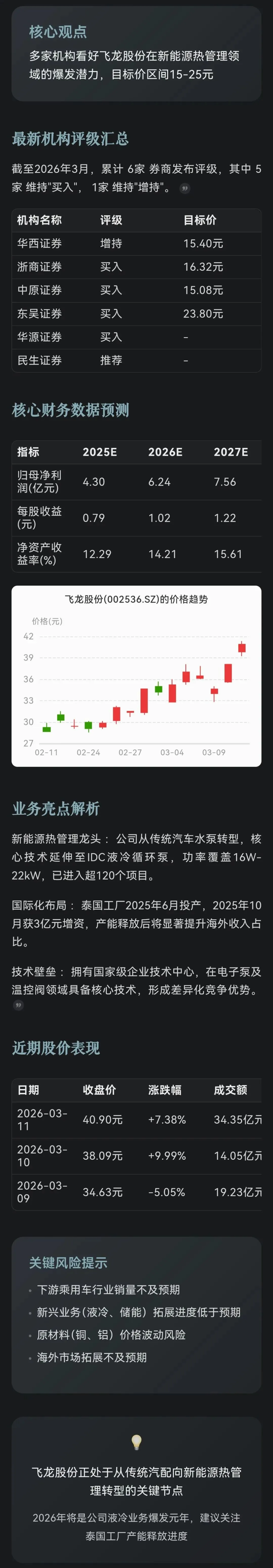 机构研报:飞龙股份 002536
