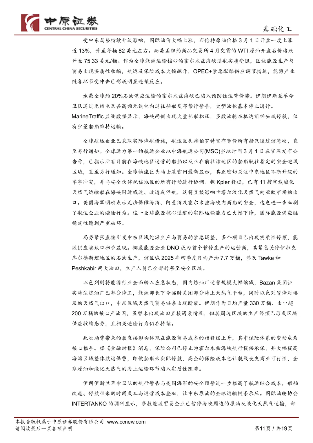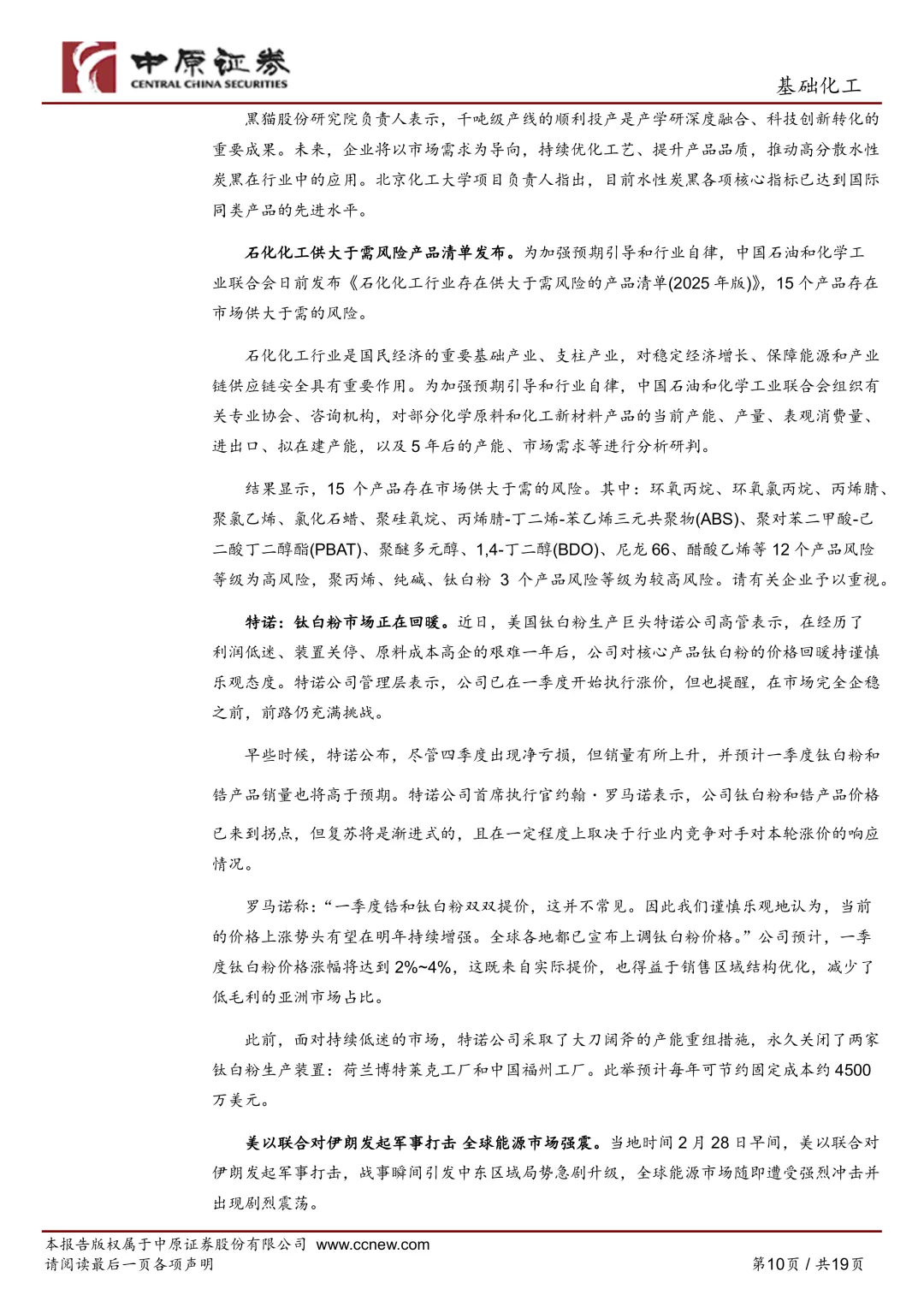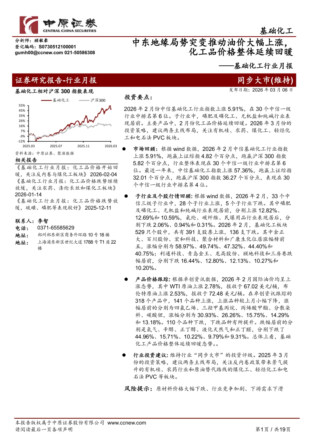 材料的表述很直白:**化工品价格延续回暖**,同时“中东地缘局势突变推动油价大幅上涨”。