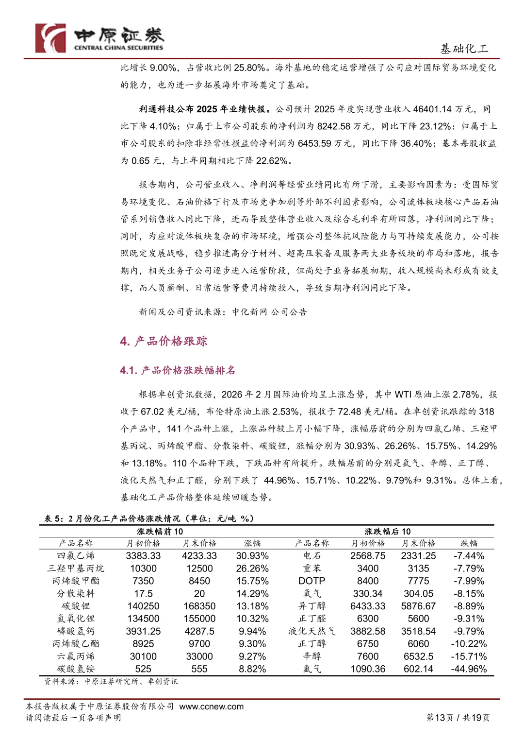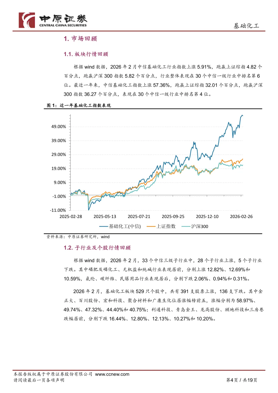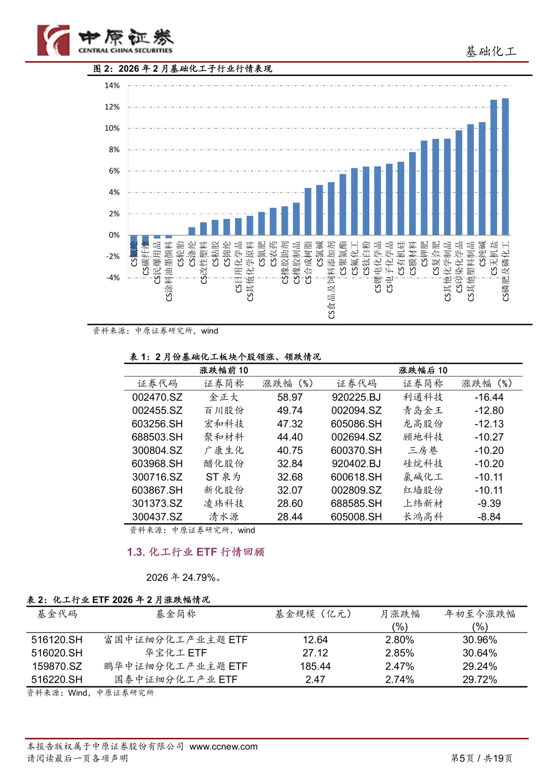 - Wind 数据:2026 年 2 月,中信基础化工行业指数上涨 **5.91%**。