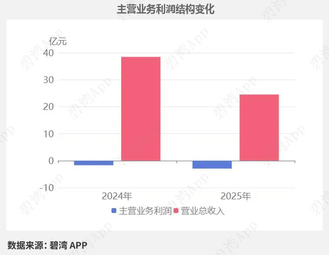 2025年三季度主营业务利润为-2.96亿元,去年同期为-1.72亿元,较去年同期亏损增大。