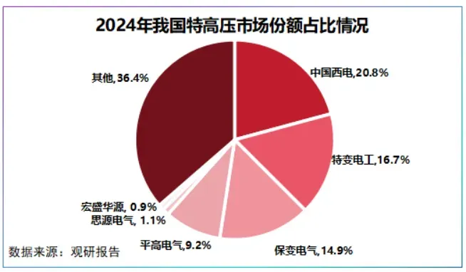2024年,在我国特高压市场中,保变电气占比14.9%,仅次于中国西电(20.8%)和特变电工(16.7%)。