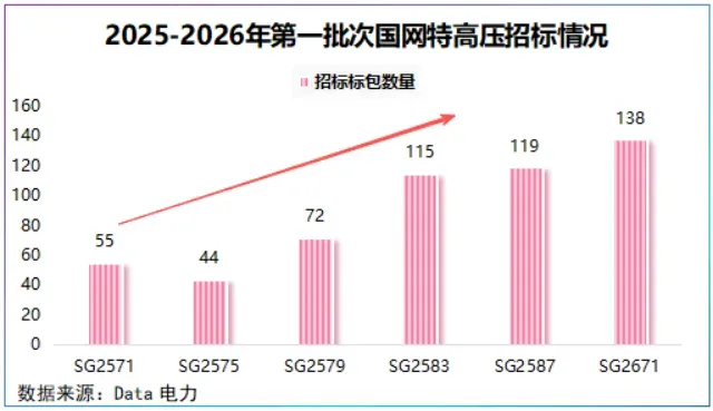 近日,国网招标大干快上。2月中旬,国网公布2026年特高压项目第一次设备招标公告,相比以往,本次招标重点在数据的变化。