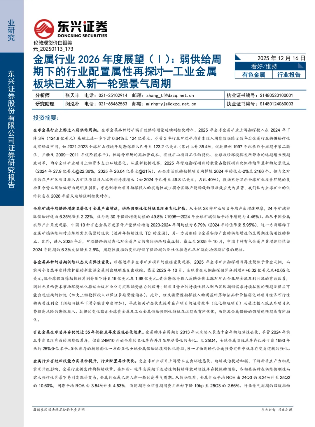 关注我们,后台回复“202603131”就可以获取《东兴证券:金属行业2026年度展望(Ⅰ):弱供给周期下的行业配置属性再探讨,工业金属板块已进入新一轮强景气周期》(完整版) 的全文下载链接。