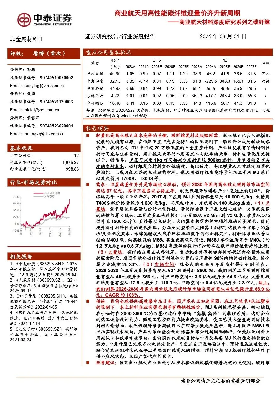 12、商业航天材料深度研究系列之碳纤维:商业航天用高性能碳纤维迎量价齐升新周期.pdf
