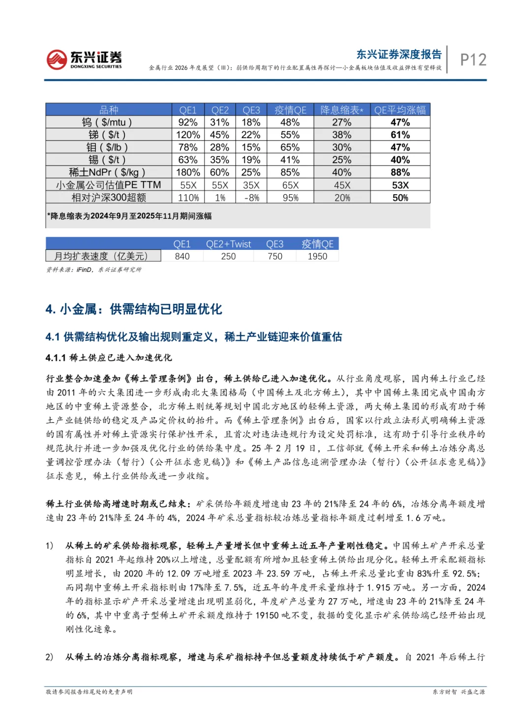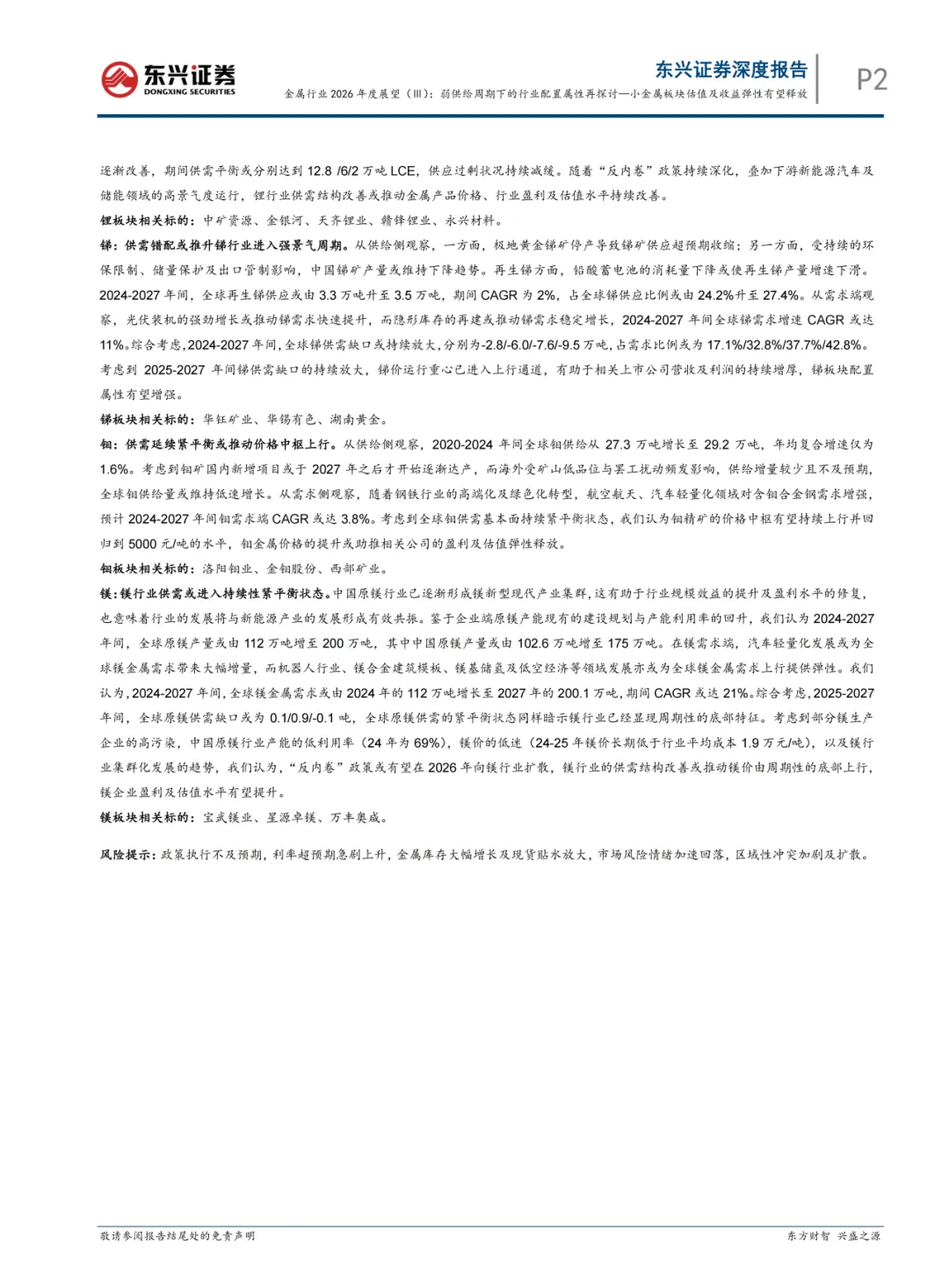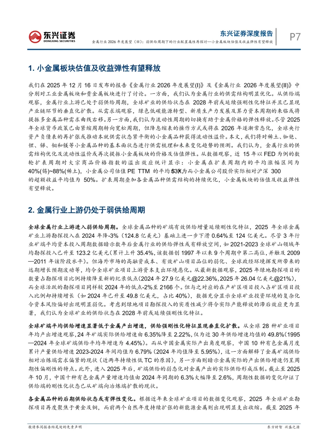 关注我们,后台回复“202603133”就可以获取《东兴证券:金属行业2026年度展望(Ⅲ):弱供给周期下的行业配置属性再探讨—小金属板块估值及收益弹性有望释放》(完整版) 的全文下载链接。