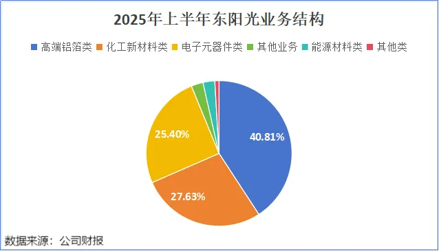 如今,东阳光主营业务已涵盖电子元器件、高端铝箔、化工新材料、能源材料、液冷科技、具身智能六大板块,其中化成箔全球市占率约30%,是国内唯一化成箔出口占比超50%的企业。