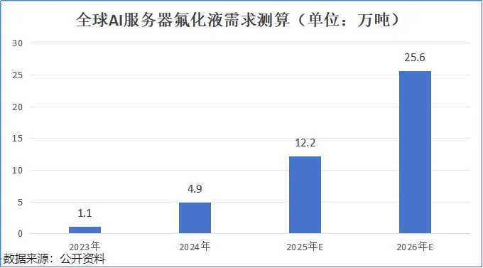 在AI高功率密度场景下,随着芯片功耗突破1000W,氟化液的需求激增,已成为液冷市场的核心增长引擎。