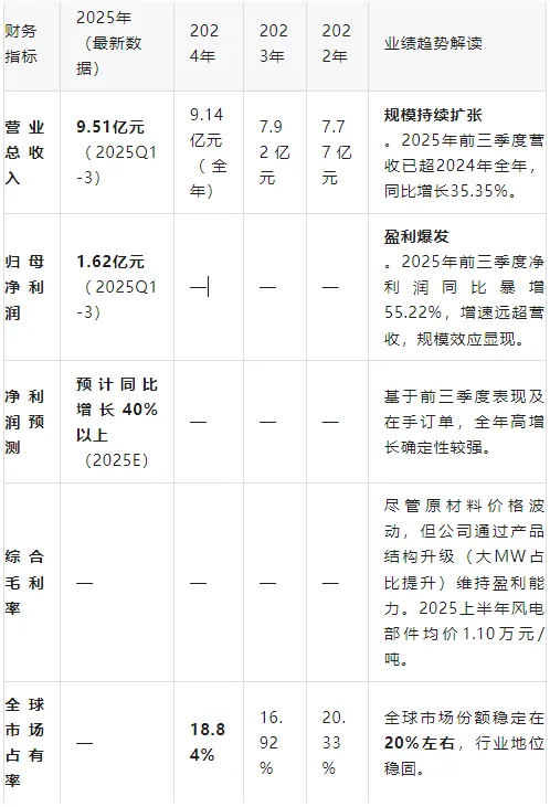 根据公司招股书及上市后披露的最新数据,锡华科技在上市前及上市当年(2025年)展现了强劲的成长性,尤其是在风电行业高景气度背景下,盈利能力显著提升。