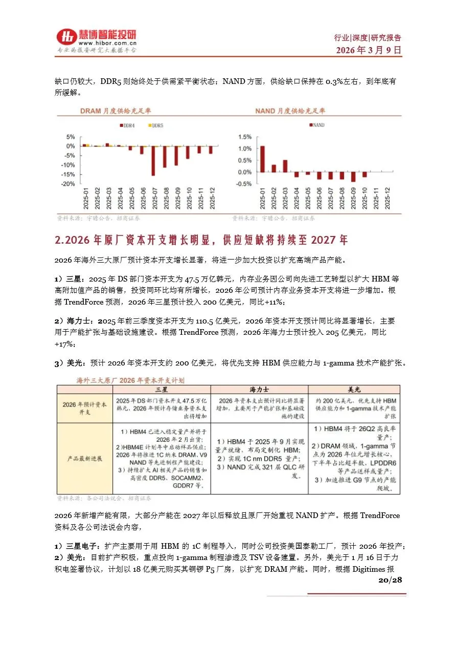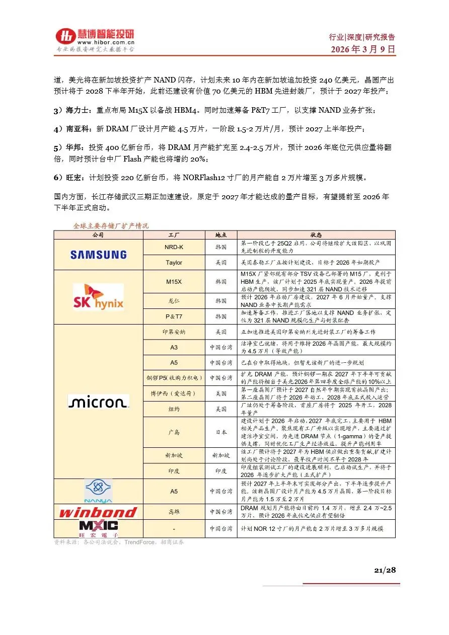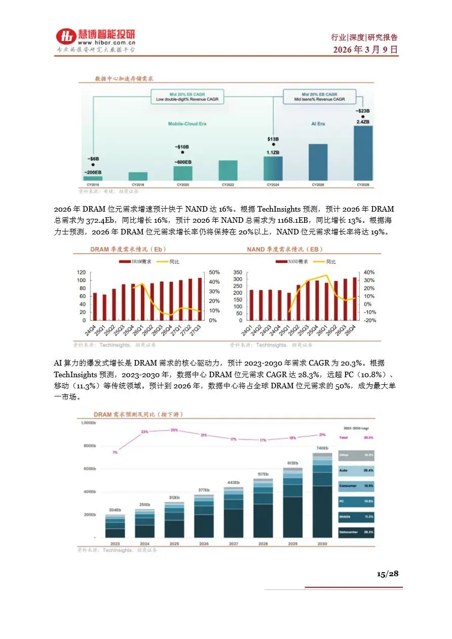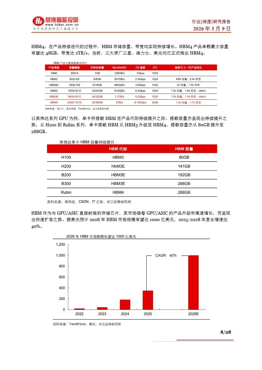 存储行业目前正处于一个前所未有的“超级周期”中,受AI算力需求激增的驱动,全球存储芯片市场供不应求,价格持续上涨。DRAM和NAND Flash作为主流存储芯片类型,其现货价与合约价均呈现显著增长态势,尤其是HBM(高带宽内存)作为DRAM的高端产品,因其在AI服务器中的广泛应用,成为市场增长的新引擎。随着AI大模型参数的不断拓展,对存储容量和带宽的需求急剧增加,推动了NAND Flash在数据中心的重要性日益凸显。未来,随着HBM技术的持续迭代和产能的逐步释放,以及NAND Flash在AI推理中的广泛应用,存储行业将迎来新一轮的增长高潮,市场规模有望在2026年突破3000亿美元大关。
