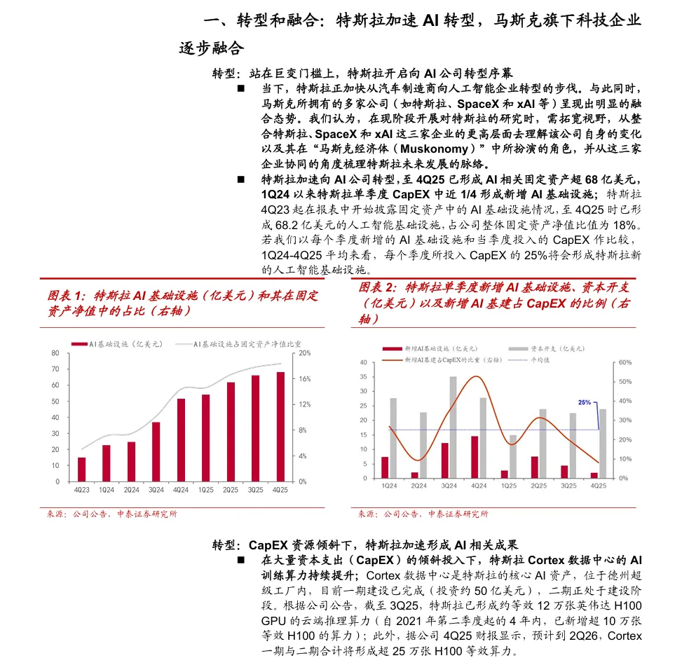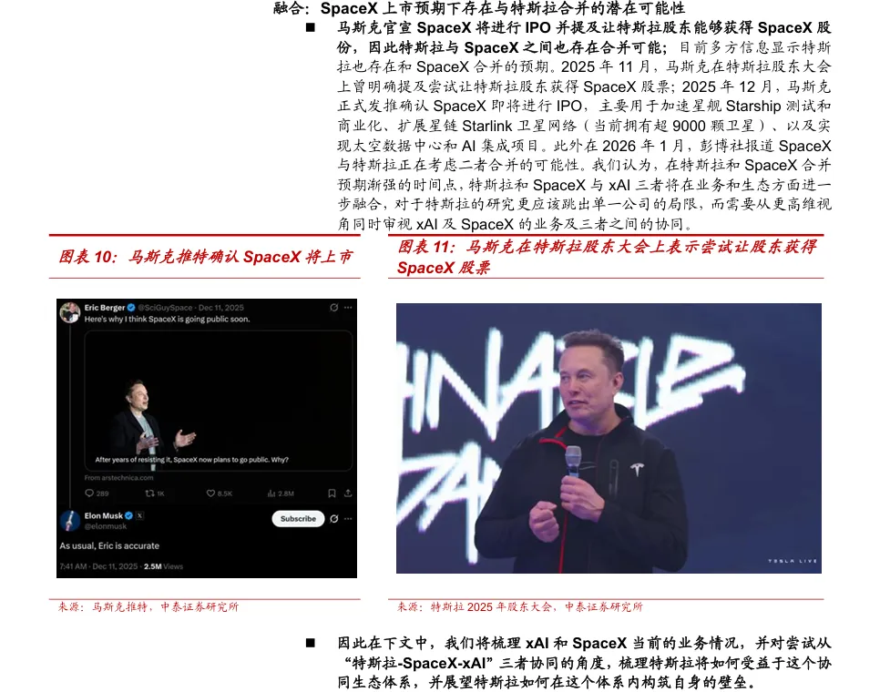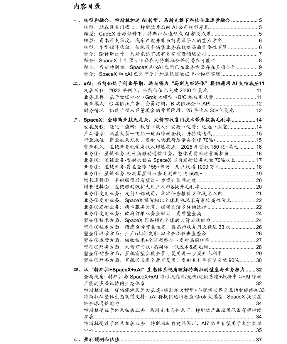 【研报230】特斯拉深度研究系列:在SpaceX上市前从与SpaceX及xAI协同的更高维度视角理解特斯拉本报告提供限时下载,请查看文后提示以下仅为报告部分内容:摘要:此报告分析特斯拉加速从汽车制造商向AI企业转型的趋势。报告指出,特斯拉正与马斯克旗下SpaceX和xAI形成高度协同的生态体系,涵盖能源基建、AI算力与终端硬件。基于公开数据,系统梳理了特斯拉的AI化进程、协同生态的壁垒与业务潜力,为投资者提供全面视角。本报告共计:42页,受篇幅限制,仅展示部分内容。如果想要获取完整版PDF文件,可通过以下两种方式获取:方式一:扫码登录牛喀网下载方式二:分享本文至朋友圈,至少获得5个赞截图给“牛小喀”免费获取扫码添加牛小喀👇👇👇往期精彩