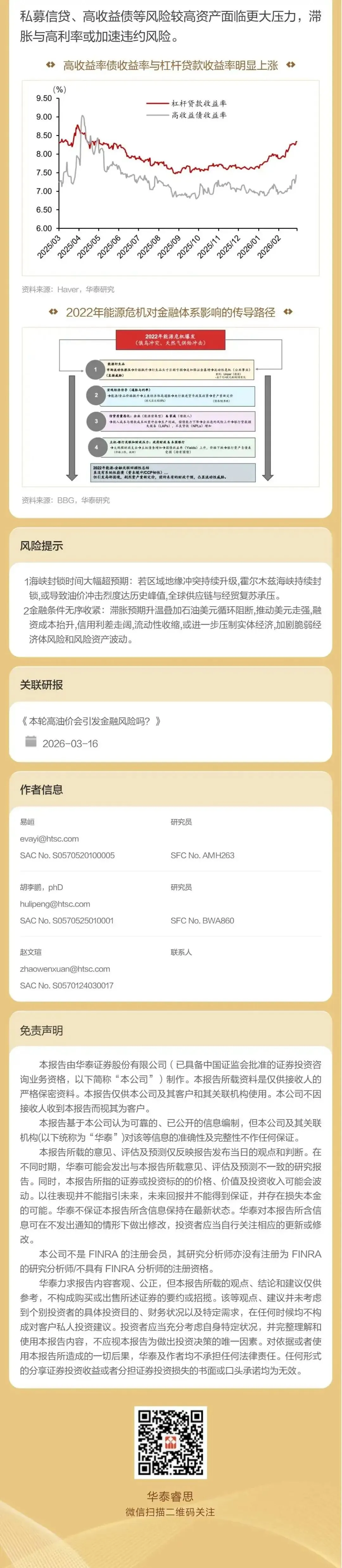 华泰 | 宏观深度:本轮高油价会引发金融风险吗?