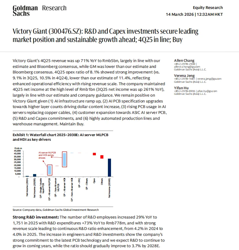 AI基础设施加速建设,推动AI服务器PCB需求强劲。技术向高层数升级,带动单机价值量提升;同时PCB正替代铜缆在AI服务器中的应用,进一步扩大市场空间。
