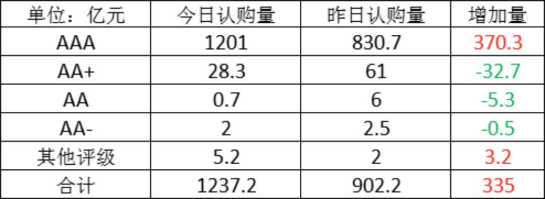 今日存单认购量规模1237.2亿元,较上一工作日认购量有所增加,增加了335亿元。