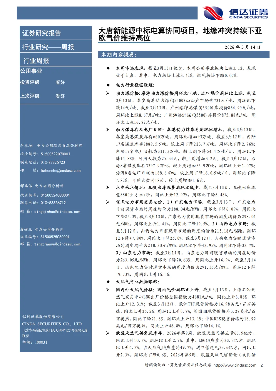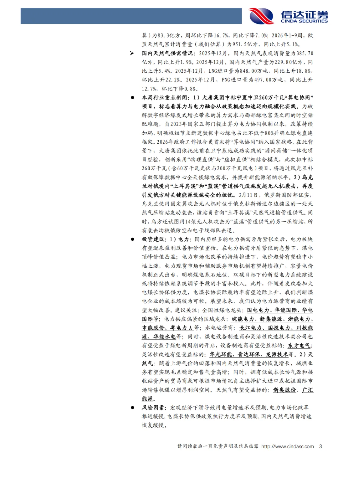『研报』天然气周报:大唐新能源中标电算协同项目,地缘冲突持续下亚欧气价维持高位