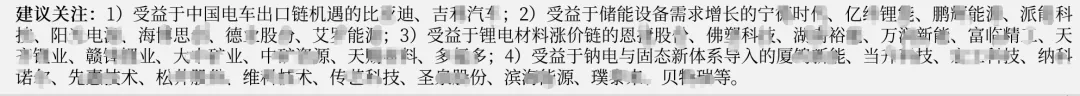 ----钠电+国态体系产业化渐行渐近,关注材料+设备端增量机遇。钠电凭借远期低成本+宽温域的优势,在高纬度地区储能以及A00级车内有望率先放量,中期看钠电产业化趋势偏乐观预期。固态电池体系整体处于产业端中试线落地阶段,新增材料体系如固态电解质、新型负极以及干法混料、辊压、纤维化、胶框印刷和等静压等新增设备环节具备更大弹性。