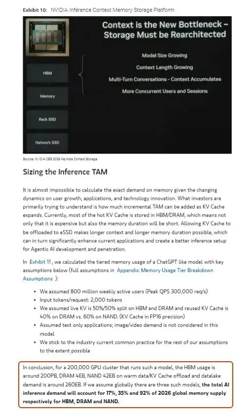 2. Agentic AI的上下文管理、自主决策、连续学习需求,需多层内存(短期工作内存、长期知识库等)支撑,对企业级DRAM、NAND的容量和性能要求远超传统AI模型,仅文本类AI推理就将消耗2026年全球35%的DRAM、92%的NAND供应。