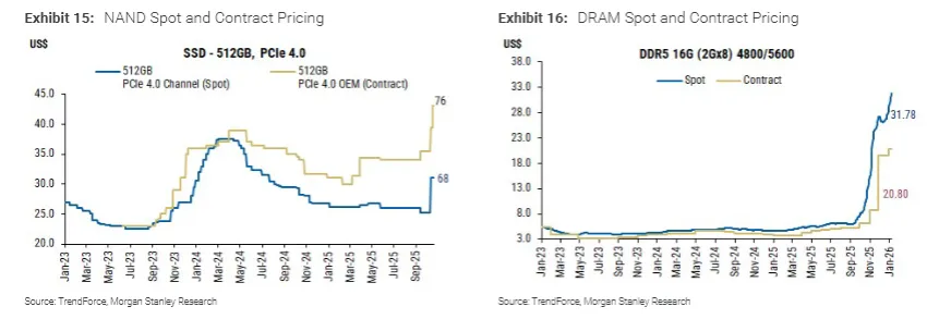 ②内存价格暴涨推高下游硬件/设备厂商成本,或引发需求萎缩;