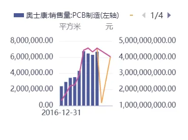 图表奥士康PCB制造销售量与营收对比 | 图表奥士康营业收入与毛利趋势 |