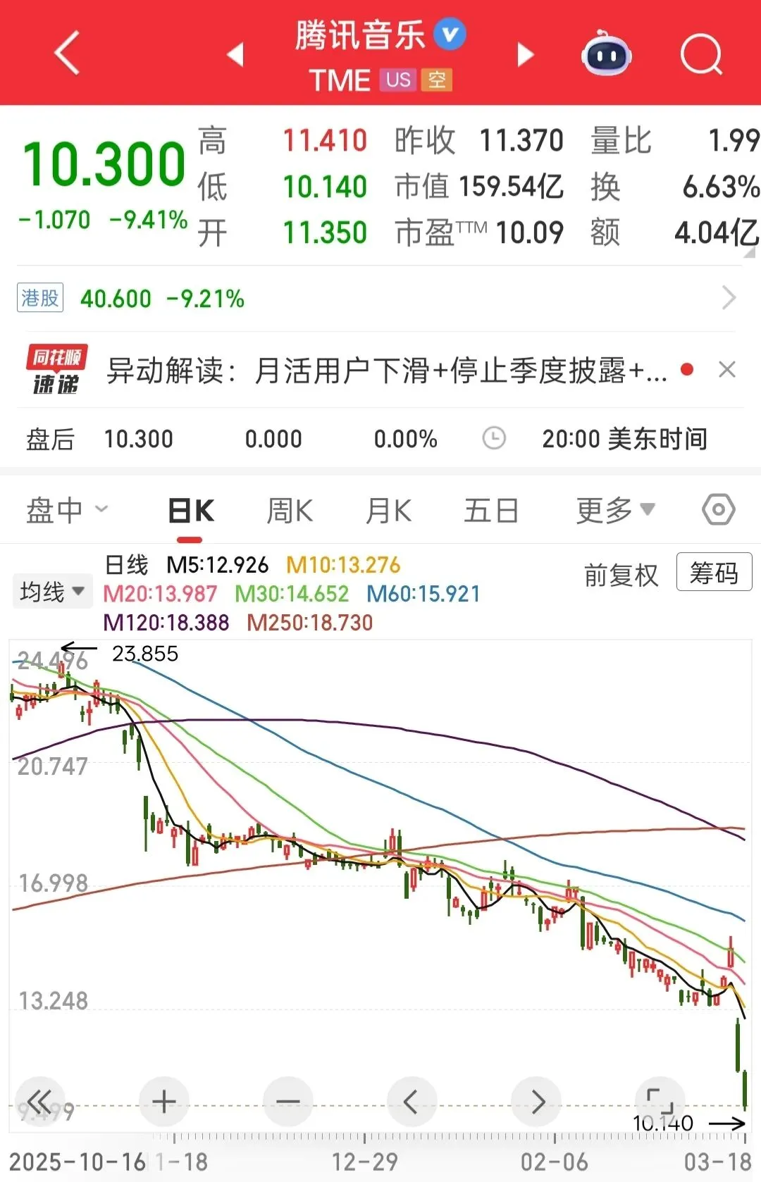 市场对这份财报的反应耐人寻味。财报发布后,腾讯音乐美股开盘跌超20%。投资者用脚投票,表达了对用户流失的担忧。