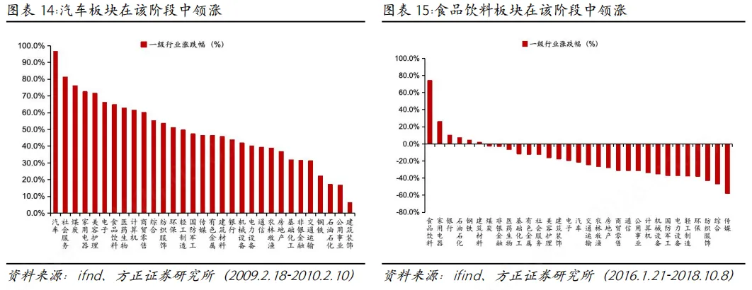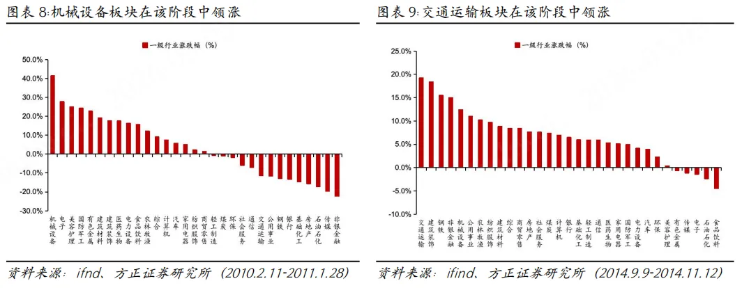 2009年油价的上涨受益于全球货币和财政政策双宽松带动的需求复苏与OPEC减产保价。2009年至2011年处于全球处于后金融危机时代,2008年底开始,美联储降至零利率并推出QE1,并推出当时最大规模7000亿美元的金融救援计划。中国推出“四万亿”刺激政策。此外,OPEC减产效果逐步开始显现,原油价格在宽松的环境与供给收缩的共同推动下开始回升。从行业来看,2009年年初国务院常务会议率先通过《汽车产业调整振兴规划》,汽车板块在该阶段中领涨市场。