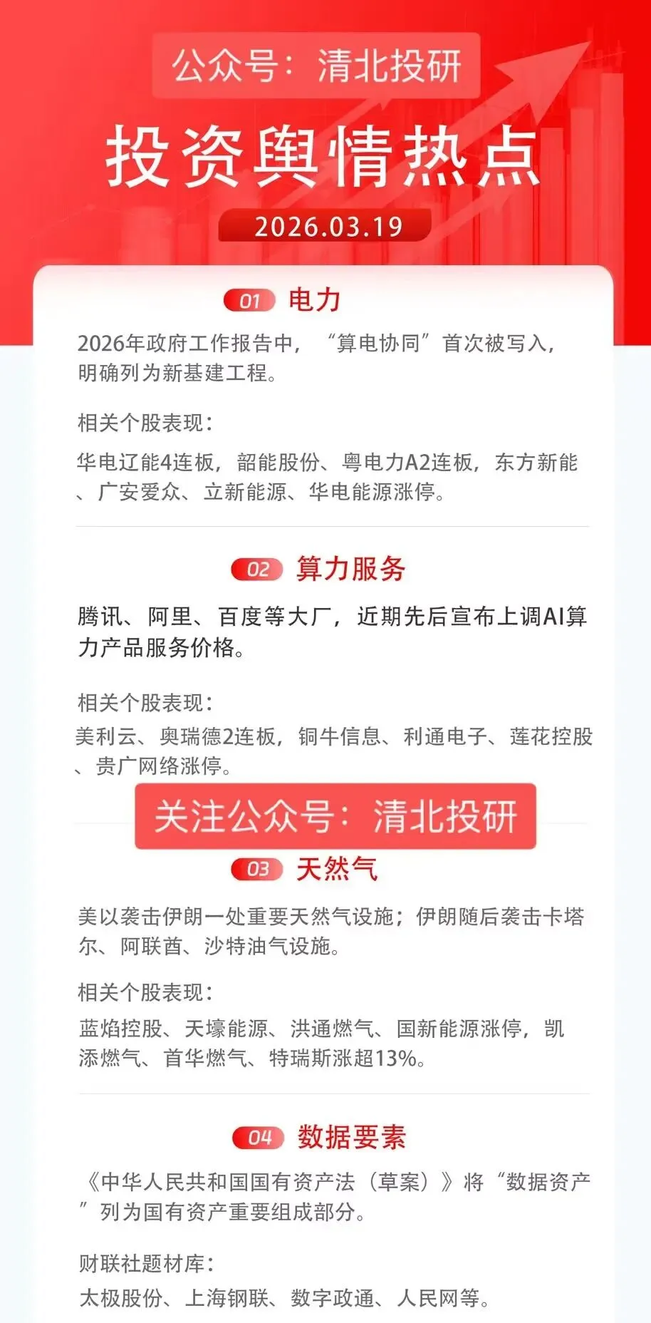 盘面上,中东局势升级,市场整体承压调整,仅少数防御板块上涨。油气产业链逆势走强,煤炭板块震荡拉升;绿电、算电协同概念反复活跃,算力租赁板块表现强势,大金融午后拉升护盘。